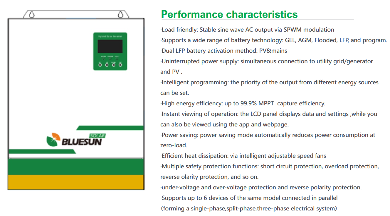 Bluesun High Efficiency 5.5KW Off Grid Hybrid Solar Inverter