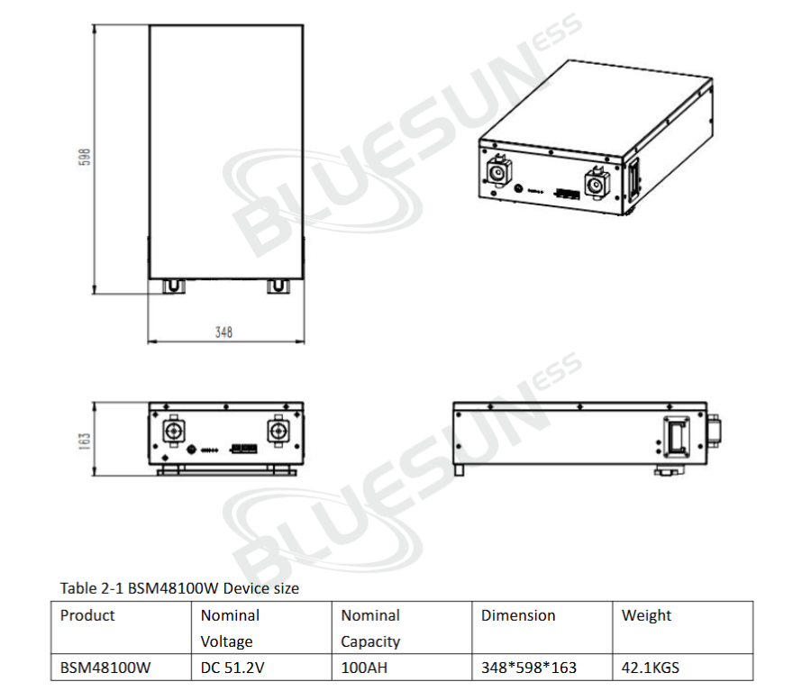 Bluesun Stackable Lithium Battery 51.2V~409.6V 5.4KW